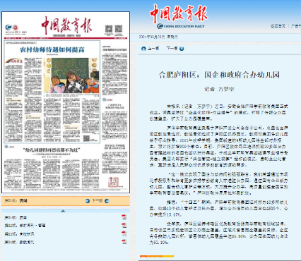 近日,《中國教育報》頭版刊登了合肥廬陽區(qū)國企和政府合辦幼兒園——安徽合肥廬陽學(xué)前教育集團的報道。